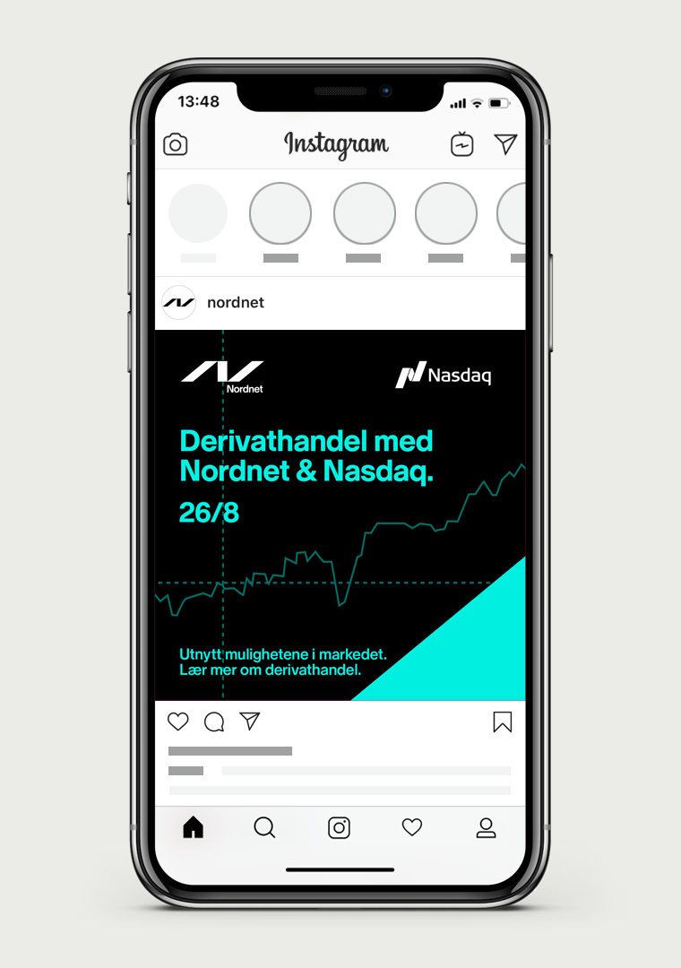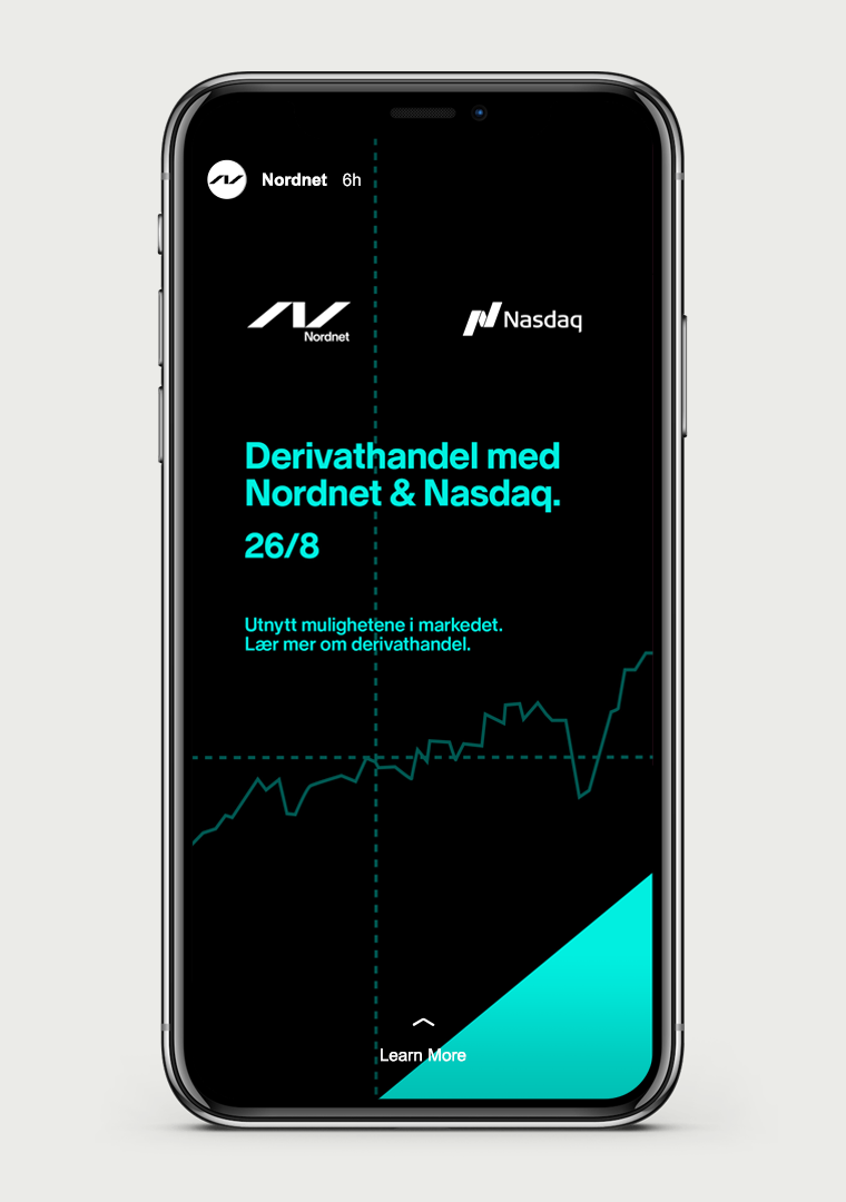 Material for a digital event in Norway in collaboration with Nasdaq with the theme “derivatives and options”. The marketing material included external communication and material to be used at the event broadcasting such as an intro and pause screen.