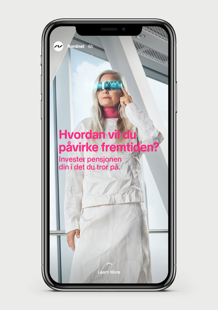 The campaign has a futuristic concept with holograms and robot dogs giving it an eye-catching look and feel. The main message is that you should future proof your pension and take action already today – otherwise someone else will do it for you. The campaign target both existing and new customers, we want the existing customers to keep their pension at Nordnet and attract new customers to move their pension to Nordnet.