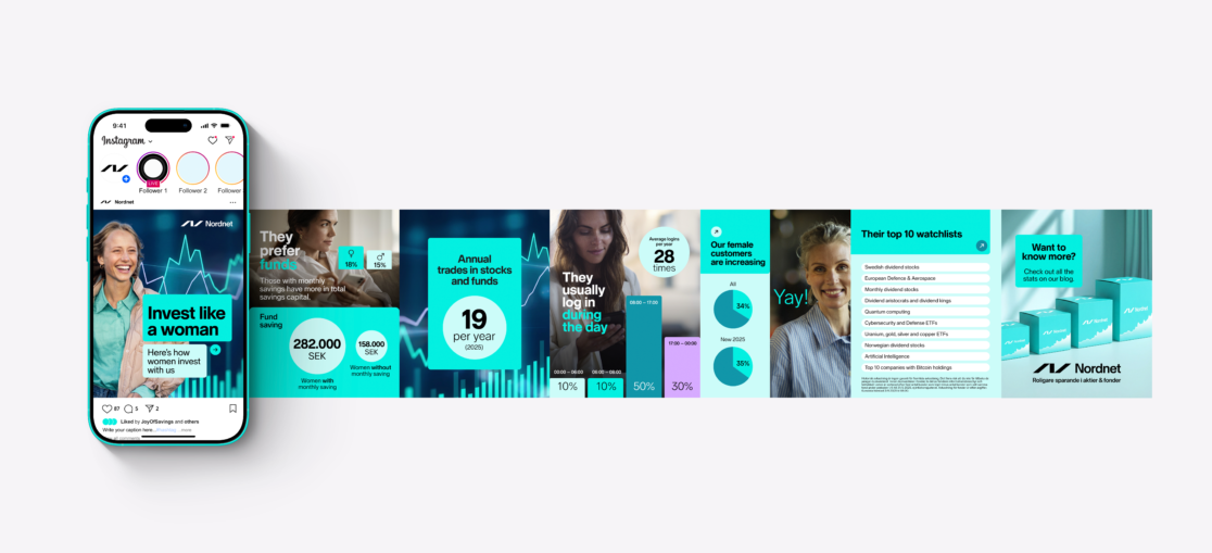 To celebrate and inspire women we highlighted data from our own female customers. In a carousel we showed different data points on how women use our platform, how they save and what inspires them.
