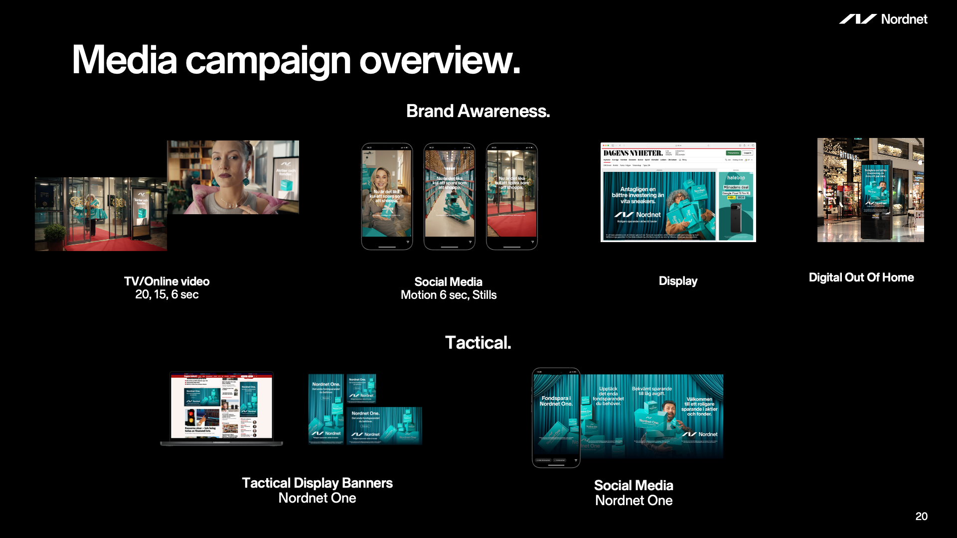 - TVC, DOOH, Cinema, SoMe, Display banners, CMS, and email.
