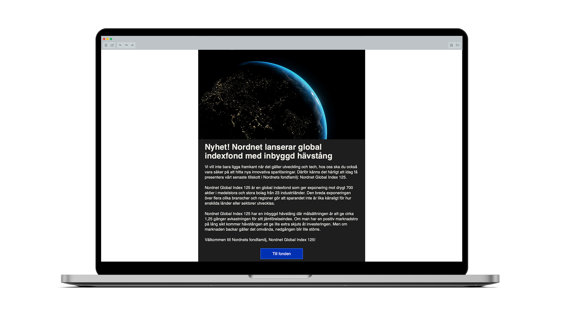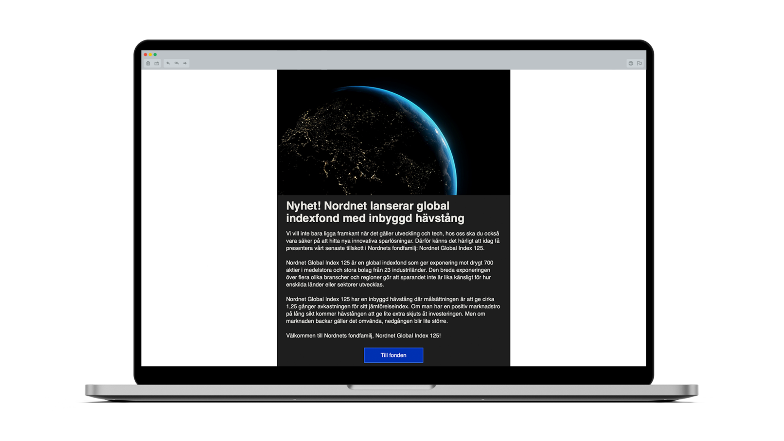 We are very happy and excited about launching our tenth index fund, Nordnet Global Index 125. Creative have been working closely with local markets to develop the communication for the launch of this fund.