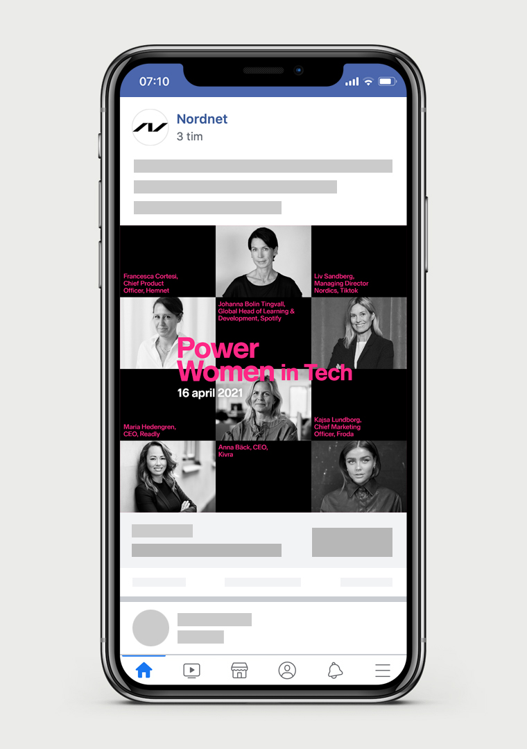 Power Women in Tech is Nordnet’s career network for women in the fin-tech sector. It is the place for you who want to meet and be inspired by female colleagues in the industry, expand your network and get a chance to exchange valuable experiences. This is how we choose to design this year’s invitations and event visuals.