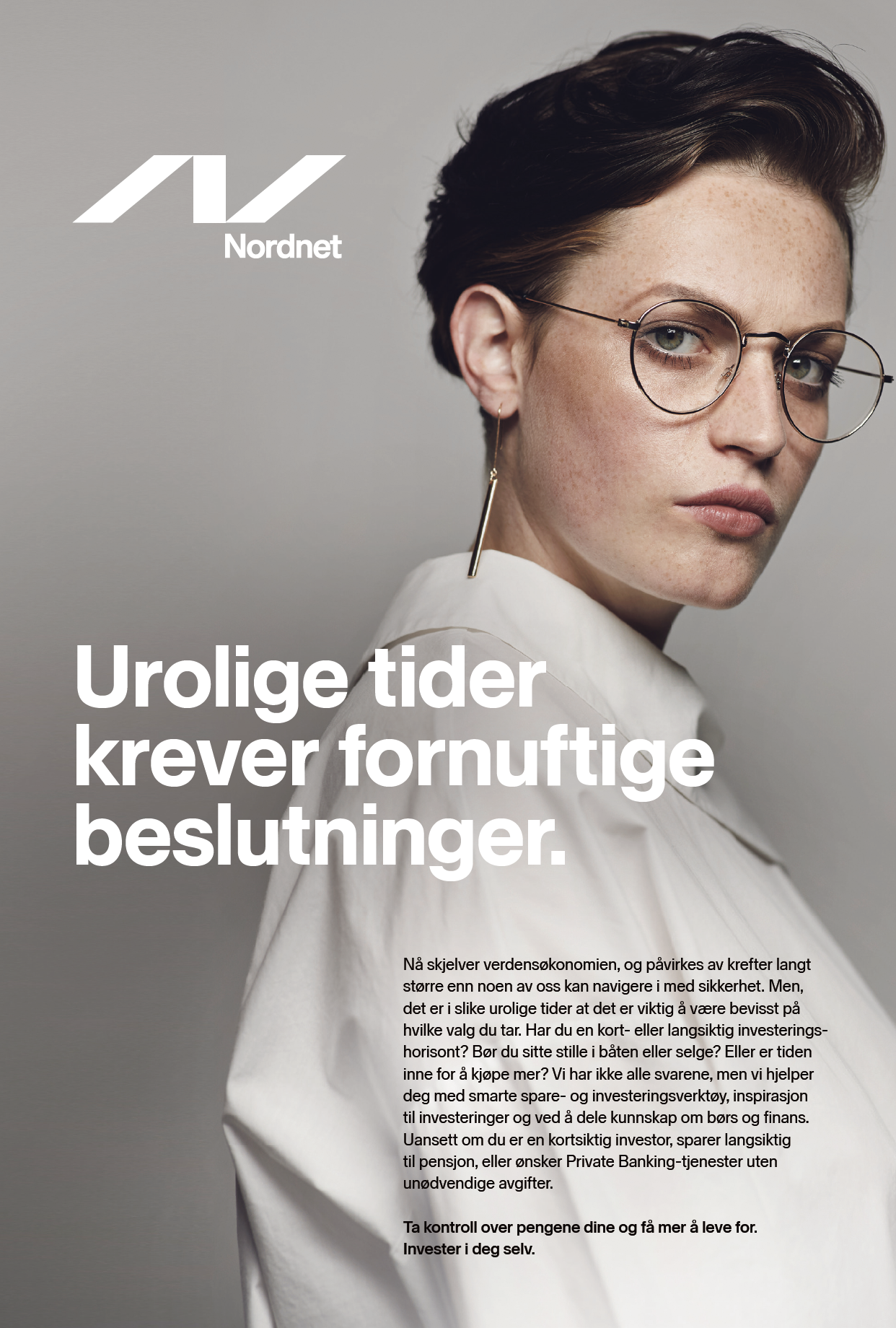 As a part of being the main sponsor at Investordagen, Nordnet had the possibility to place four prints in one of Norways biggest newspaper – Finansavisen. To penetrate the noise from the COVID-19 virus we choose to use the main message “troubled times require sensible decisions” and inform of Nordnet’s investment tools, inspiration and knowledge that can help you make those right decisions.