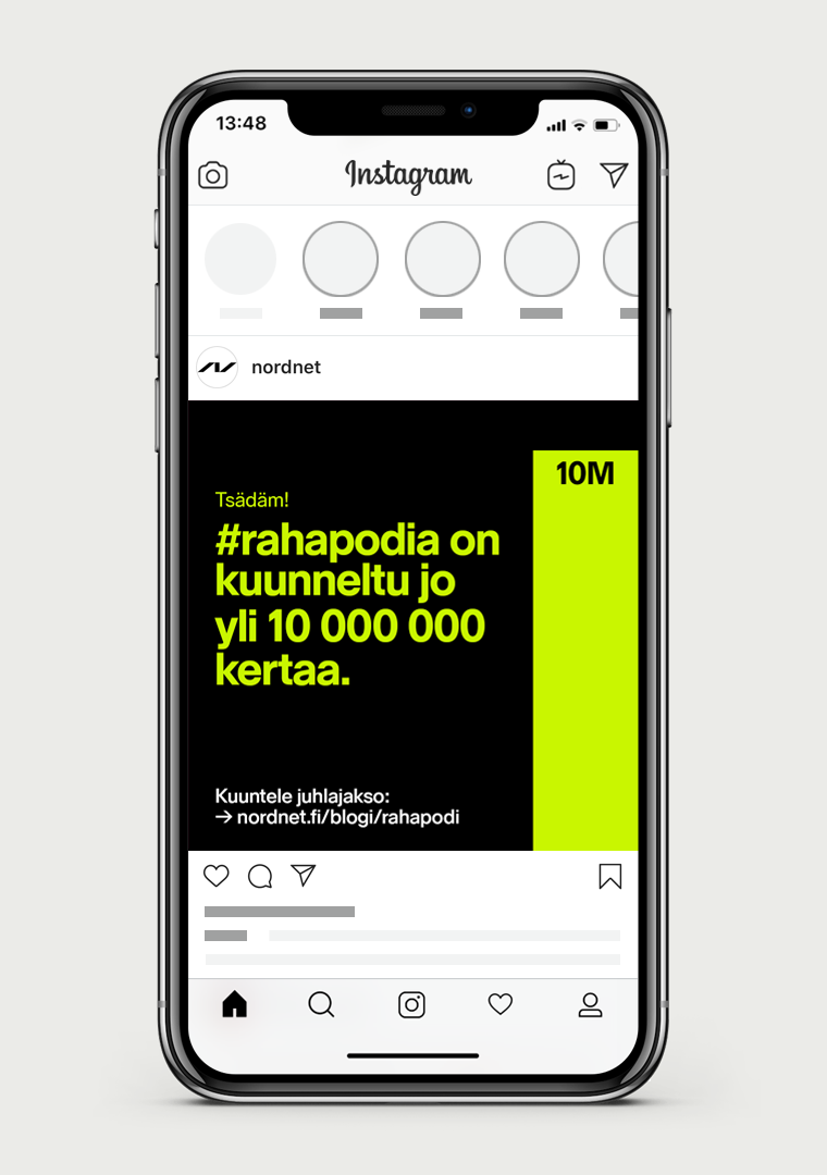 Nordnet’s Finnish podcast #rahapodi have passed 10 million listenings together on all platforms. The podcast went live with a celebration episode around Christmas and we created communication to highlight this achievement.
