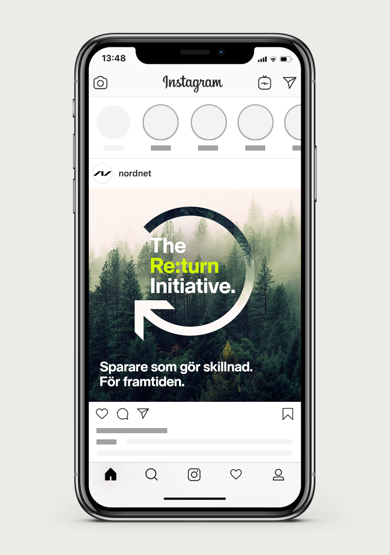 To frame and communicate a new sustainability initiative we created “The Re:turn Initiative”. The project involved naming, design and copy for all Nordic markets. The name “Re:turn Initiative refers to the idea of the project – to give something back, which also is represented by the graphic arrow.