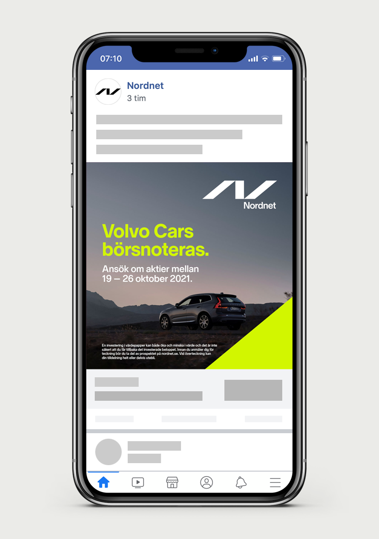 One of the largest IPO:s ever became a reality when Volvo Cars went public. The IPO was available for all our customers on the Nordic markets and we created marketing material for both internal channels and external such as social media and display banners.
